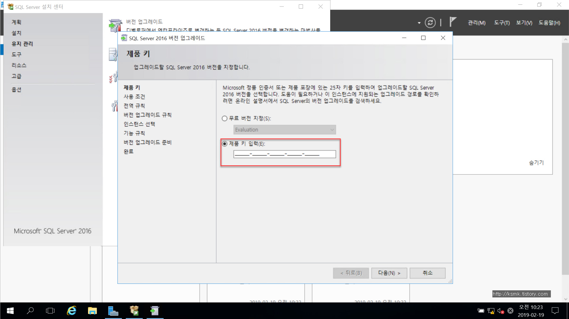 주의할점은 지금 설치된 MS SQL Server 버전이 평가판이라면 Standard, Enterprise 키 둘 다 사용할 수 있지만, Standard -> Enterprise 로의 다운그레이드는 안됩니다.