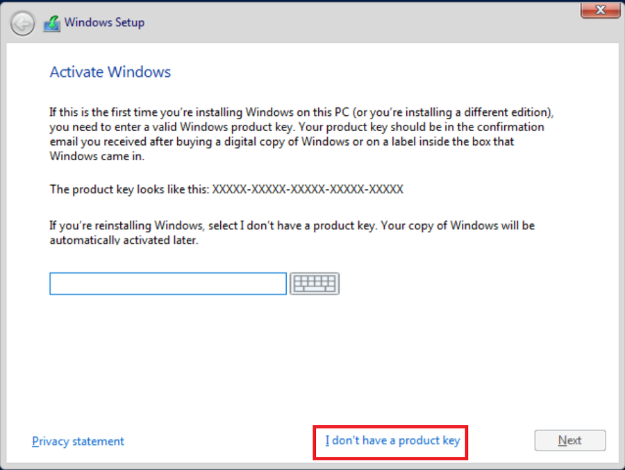 제품키가 있는 경우 키 입력 후 Next, 없을 경우에는 I don't have a product key