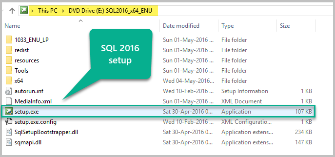 Setup.exe 파일을 클릭하여 SQL Server 설치를 실행하십시오.