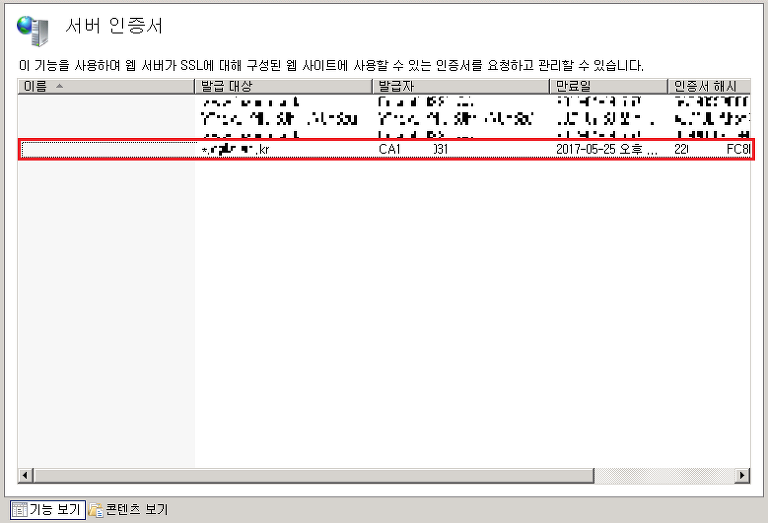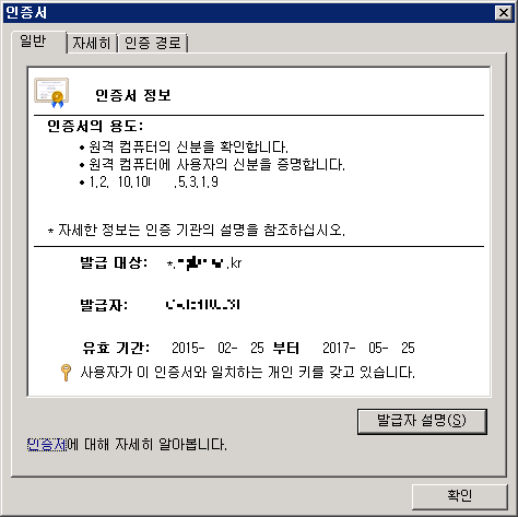 * 서버 인증서 정보는 실제 사용하는 인증서 정보라 부득이 모자이크 또는 일부 삭제 표기 하였습니다.