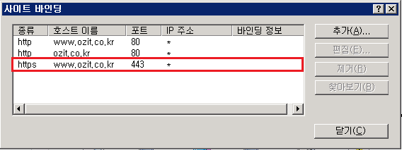 출처 : IIS 7.0 웹서버에 SSL 보안 인증서 설치하기 (웹사이트에 SSL 적용하기) [3/3] (ooz.co.kr)
