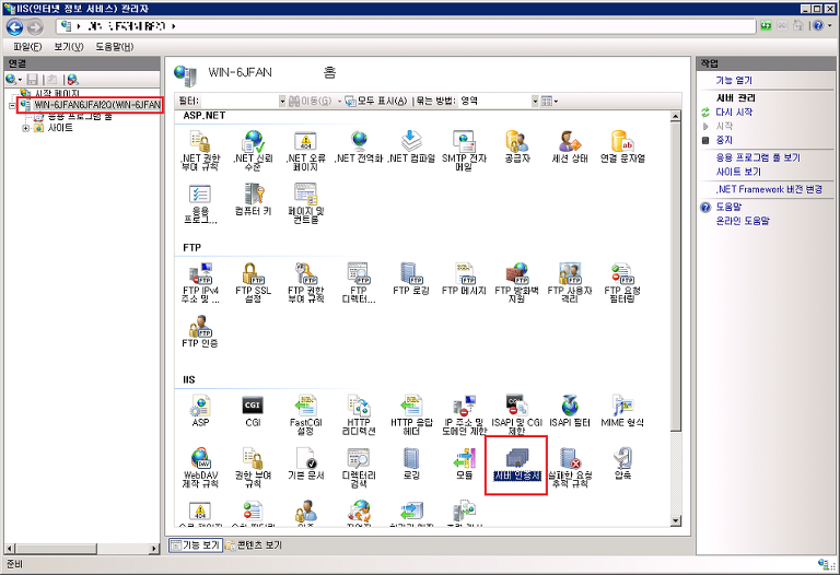1. IIS(인터넷 정보 서비스) 관리자를 실행합니다.