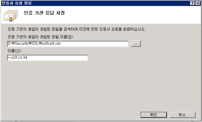 3. 인증서 요청 완료 화면에서 인증기관으로부터 발급 받은 인증서를 선택합니다.