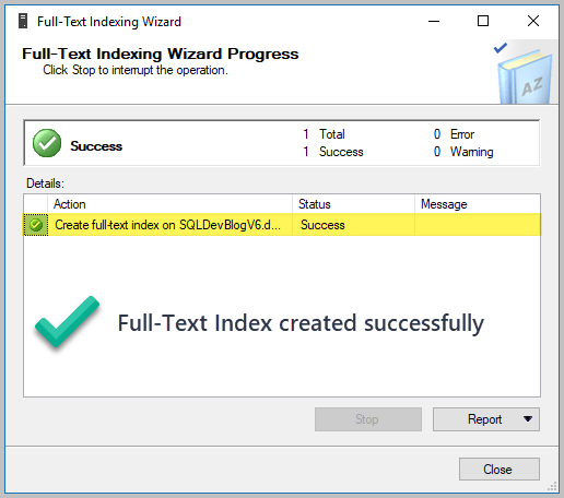 클릭 다음을 하고 선택적인 단계를 건너 뛰고, 다음을 클릭합니다 마침을 전체 텍스트 색인이 성공적으로 생성 된 것을 볼 수 있습니다.