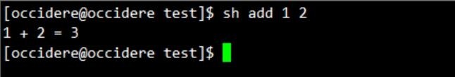 쉘 스크립트의 실행 명령어인 sh를 앞에 써주고, 프로그램의 이름인 add, 이어서 피연산자 2개를 띄어쓰기로 구분해서 입력해준다. ex) sh add 1 2