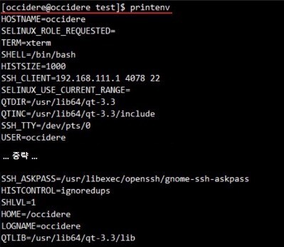 현재 지정된 환경변수를 출력하는 명령어는 printenv 이다.