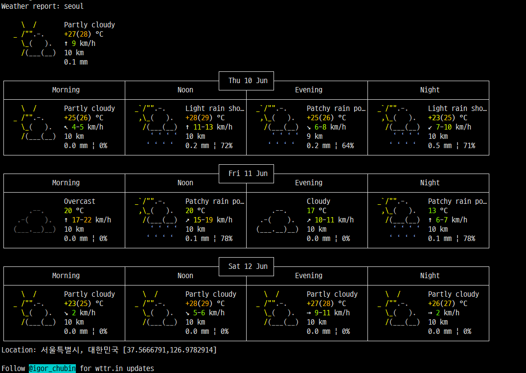 curl -XGET http://wttr.in/seoul
