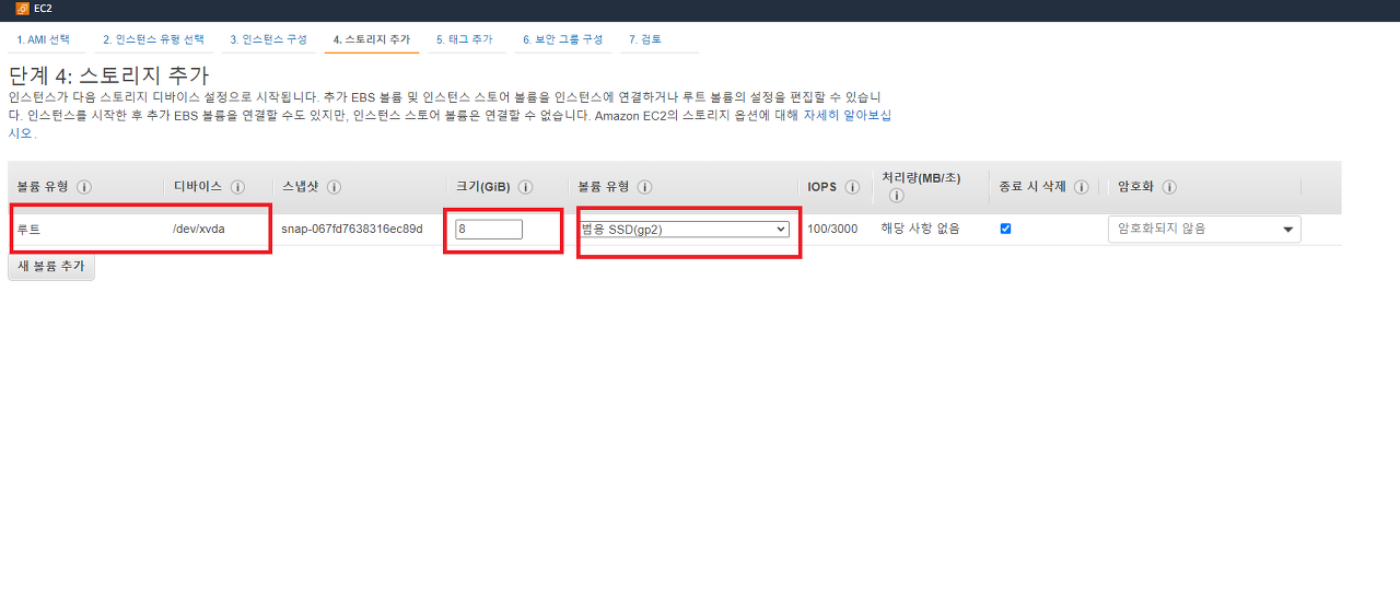 볼륨 유형에 따라 비용의 차이가 있는데, 기본적인 범용 SSD를 선택한다.