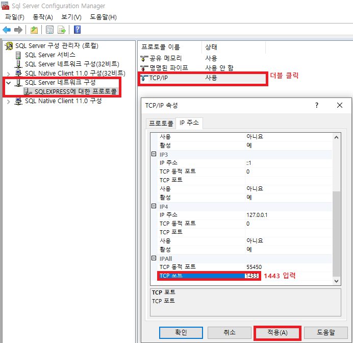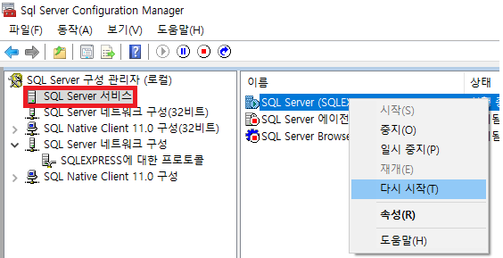 1) SQL Server Configuration Manager(SQL SERVER 구성관리자) 실행