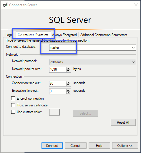 말 그대로 해당 사용자의 "default database"가 (Online이 아닌) "Offline" 상태이기 때문입니다. 이런 경우, 대화창의 "Connection Properties" 탭을 눌러 "Connect to database"에 다른 데이터베이스(예를 들어 master)를 설정한 후,