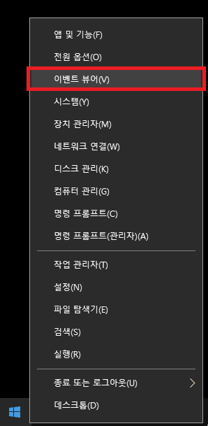 시작 → 우클릭 → 이벤트 뷰어 or 시작 → "이벤트 로그 보기" 검색