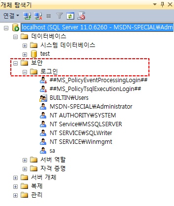 1. 서버에 접속하신 후 보안 > 로그인에서 새로운 계정생성을 클릭