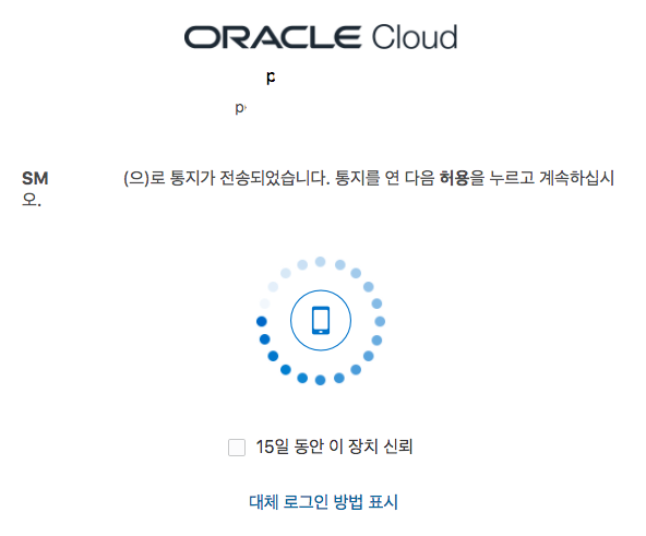 다시 접속시 Oracle Mobile OTP 사용하였다면 아래와 같이 로그인 화면이 확인 될것 이며