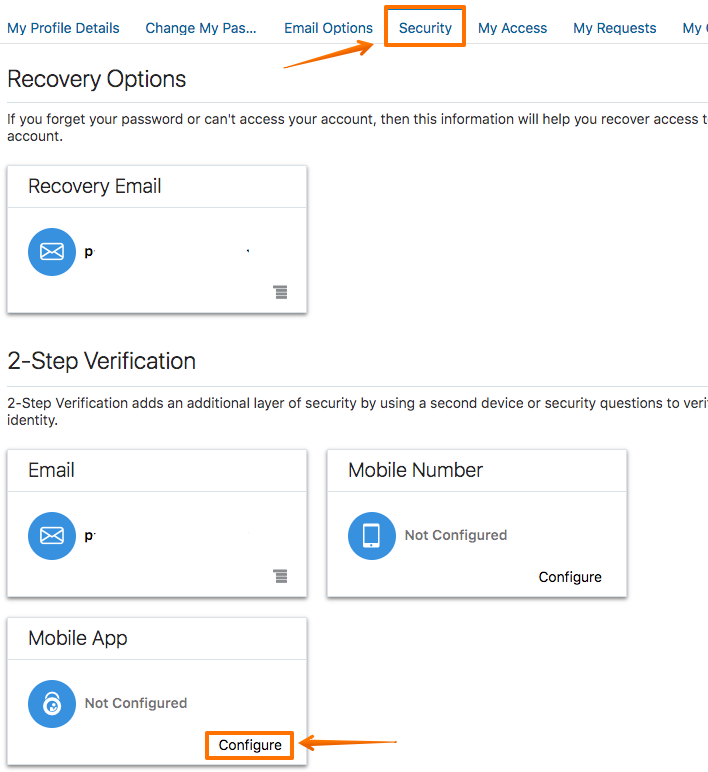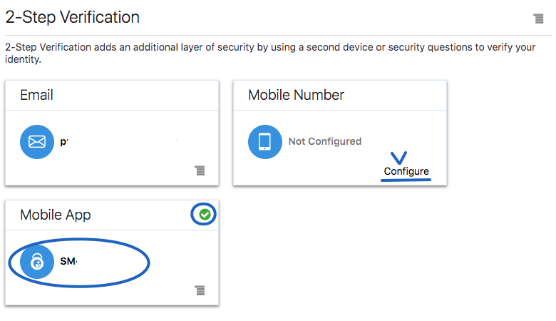 Security Tab 으로 이동 후 하단에 보이는 "Mobile App" 의 Configure 를 클릭 합니다.