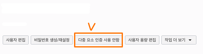 정상적으로 완료 되었다면 아래와 같이 "다중 요소 인증 사용 안함" 으로 확인 되게 됩니다.