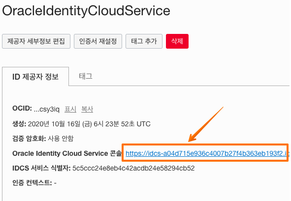 "OracleIdentityCoudService" 를 클릭 합니다.