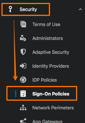 다시 메뉴에서 Security -> Sign-On-Policies 로 이동 합니다.