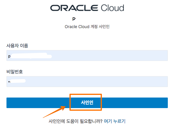 오라클 클라우드의 로그인시 아래와 같이 로그인 하는 곳이 두곳이 있습니다