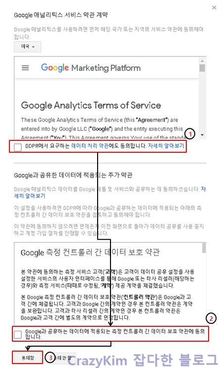 2. "Google과 공유하는 데이터에 적용되는 측정 컨트롤러 간 데이터 보호 약관에 동의합니다"도 체크해줍니다