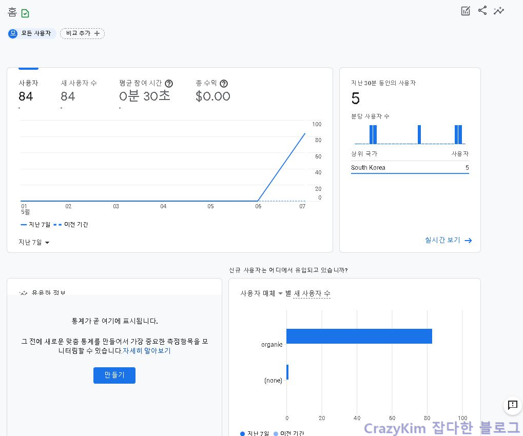 구글 애널리틱스에 티스토리 블로그를 등록하면 좀 더 상세한 정보들을 확인할 수 있습니다