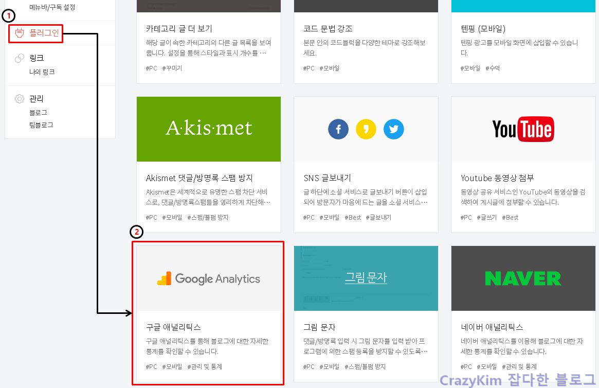 이제 티스토리 플러그인을 사용하여 티스토리와 구글 애널리틱스를 연결해보겠습니다
