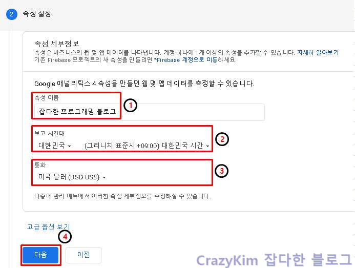 4. 속성 설정이 완료되었다면 "다음"버튼을 눌러 다음 단계로 이동합니다