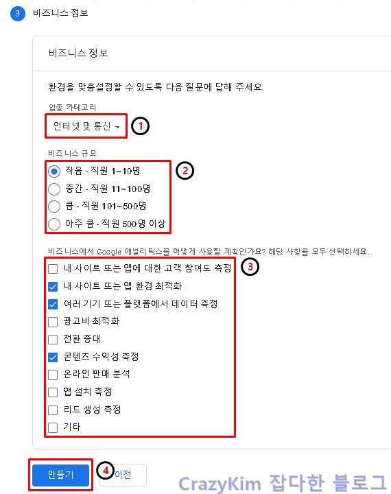 4. 마지막으로 "만들기"를 선택하여 애널리틱스를 만듭시다!!