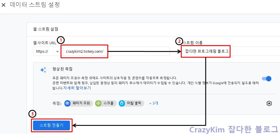2. 스트림 이름은 블로그 이름을 적어줍니다