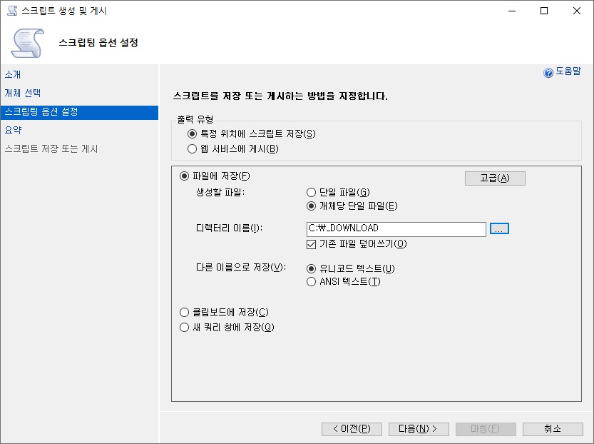 스크립팅한 파일을 저장할 위치를 지정합니다.