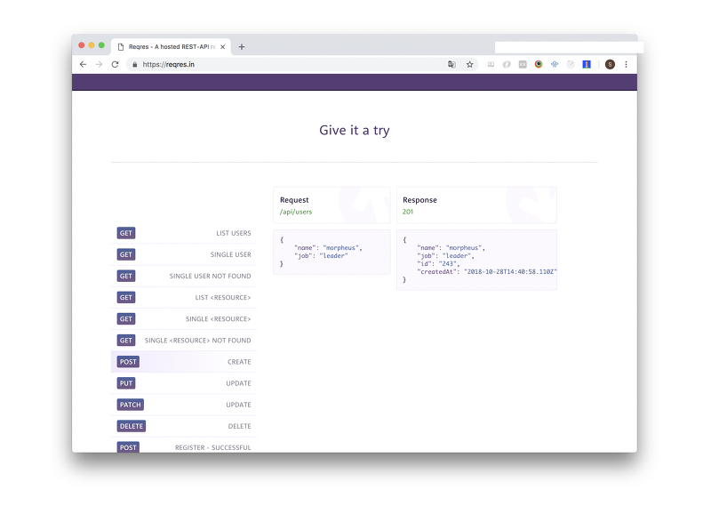 reqres.in은 테스트용 api를 제공하는 사이트입니다.
