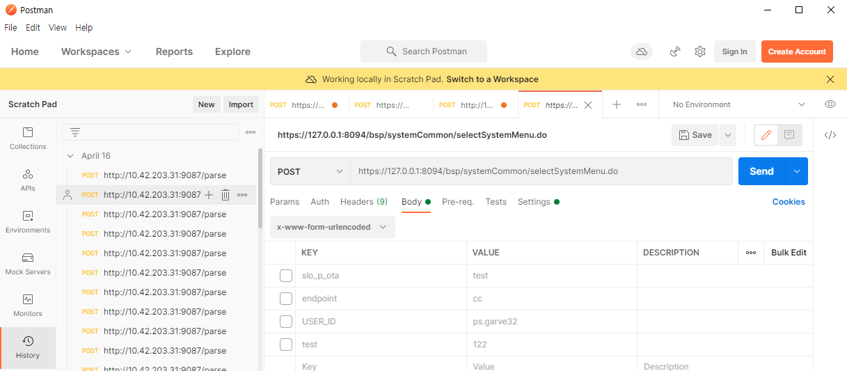 일반적으로 단일 요청에 대한 테스트를 빠르게 진행해볼 때 유용한 기능이다.