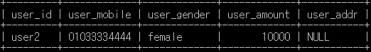 SELECT user_id , user_mobile , user_gender , user_amount , user_addr