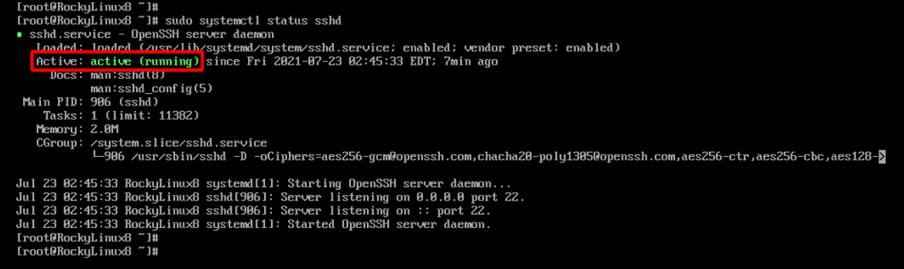 아래와 같이 SSH 서비스가 활성화되어 기본 SSH 포트 22에서 실행됩니다.