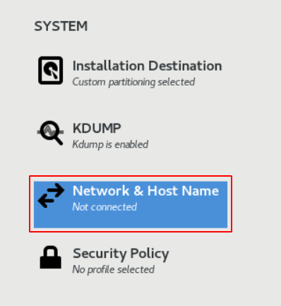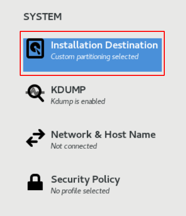 - SYSTEM: Rocky Linux 설치 대상에 대한 파티션을 설정하게 됩니다. 그런 다음 호스트 이름과 네트워크를 설정합니다.\n