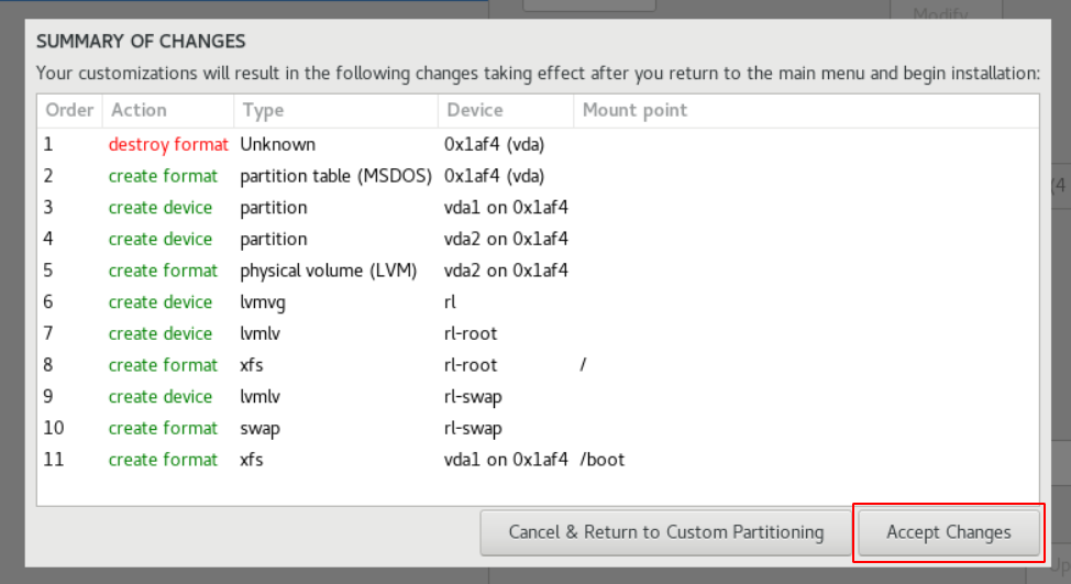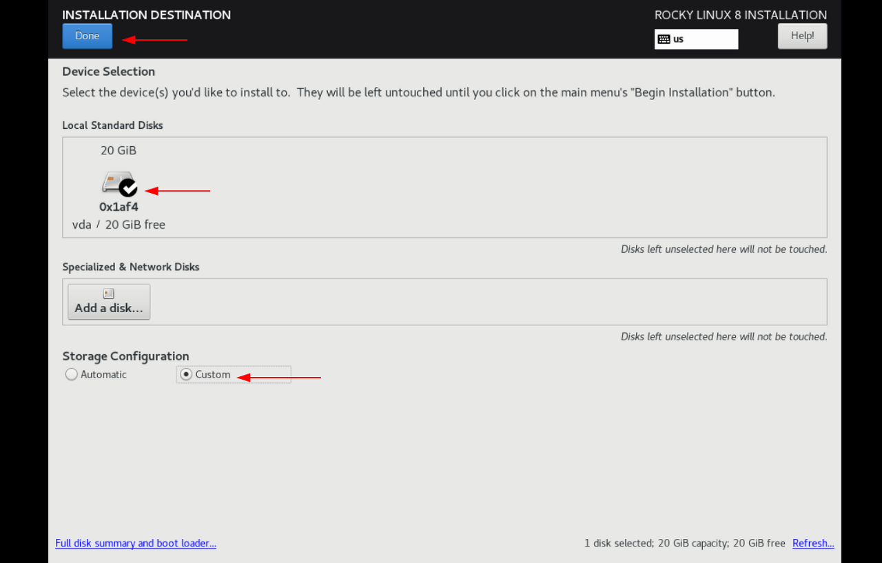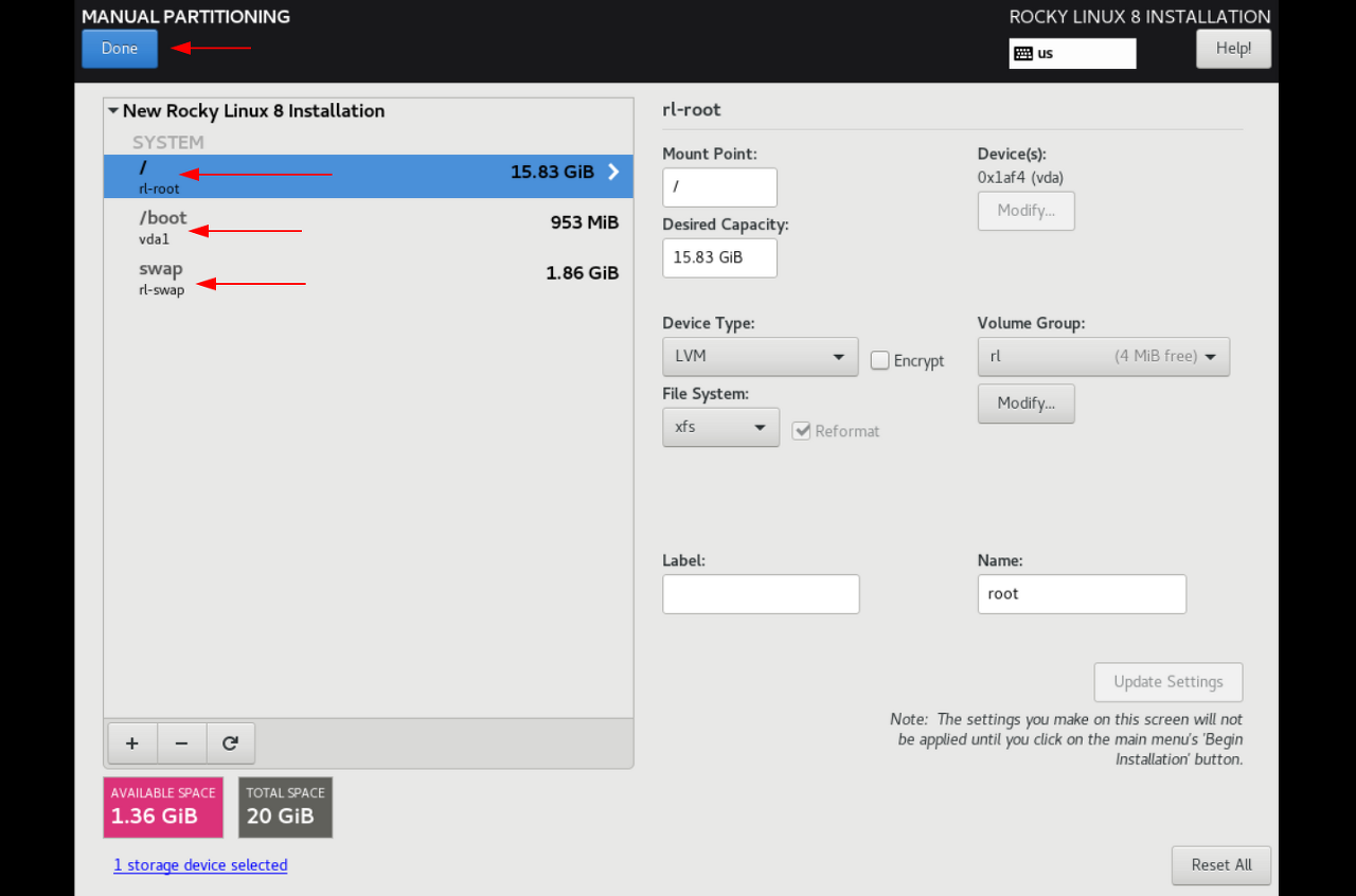 이제 Rocky Linux용 사용자 지정 파티션을 만들 수 있습니다.