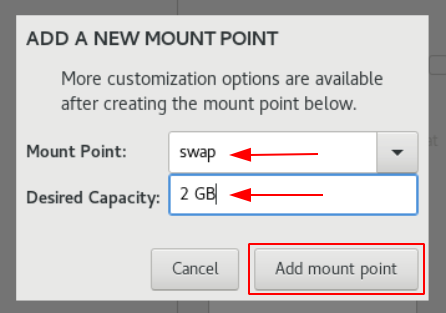스왑 파티션 : 마운트 지점: 스왑 - 원하는 용량: 2GB