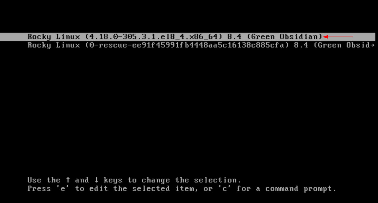 부팅 과정에서 아래와 같이 Rocky Linux grub이 표시됩니다.