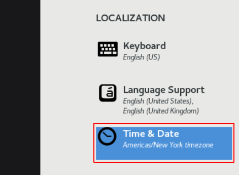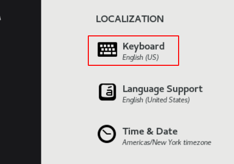 - LOCALIZATION: 키보드 레이아웃, 언어, 날짜 및 시간을 설정하게 됩니다.\n