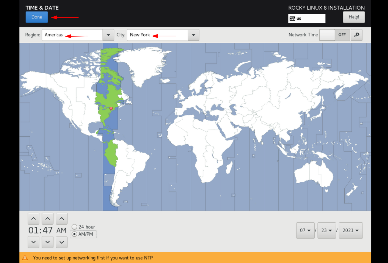 지도를 클릭하여 "지역" 및 "도시"를 설정합니다. 그런 다음 하단 페이지에서 자신의 시간과 날짜를 조정할 수 있습니다. 선택적으로 각 상자에서 "지역" 및 "도시"를 선택할 수 있습니다.
