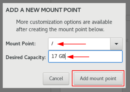 루트 파티션 : 마운트 지점:/- 원하는 용량: 17GB