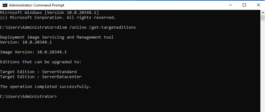 dism /online /set-edition:serverdatacenter /productkey:WX4NM-KYWYW-QJJR4-XV3QB-6VM33 /accepteula