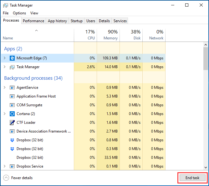 - 다음에서 브라우저를 찾으십시오. 프로세스 탭을 클릭하고 작업 종료 그것을 선택한 후.