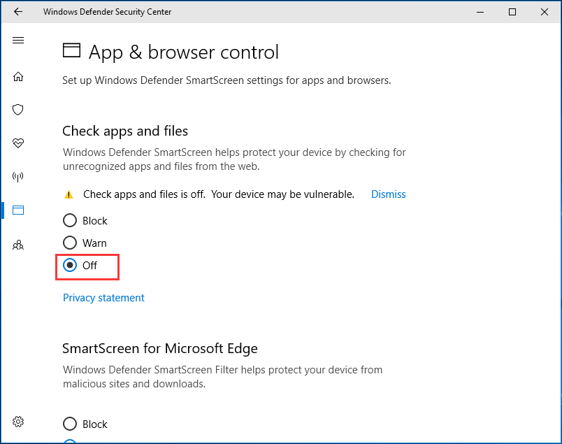 경우에 따라 Internet Explorer (IE) 또는 Microsoft Edge에 경고가 나타날 수 있습니다. 제거하려면 IE를 열고 설정> 안전 Windows Defender SmartScreen을 끕니다. Edge에서 설정> 고급 설정보기> 개인 정보 보호 및 서비스 토글을 끄려면 – Windows Defender SmartScreen을 사용하여 악성 사이트 및 다운로드로부터 나를 보호하십시오. .