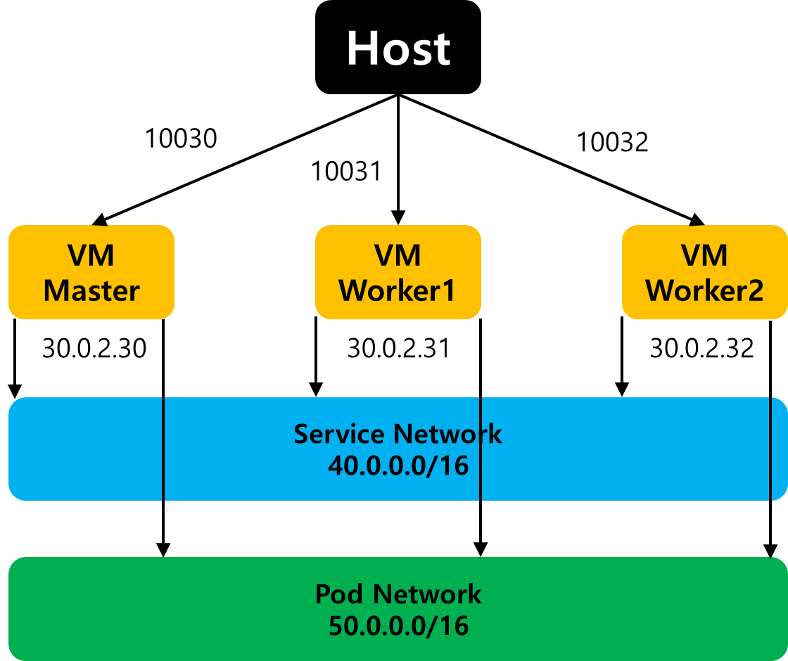 - VM(k8s Node) 들은 30.0.2/24를 CIDR로 사용한다.