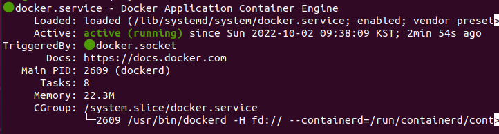 위 명령을 이용해서 Docker가 정상적으로 동작하고 있는지 확인한다.