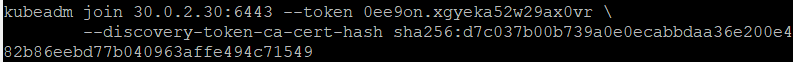 $ kubeadm join 30.0.2.30:6443 --token 0ee9on.xgyeka52w29ax0vr \