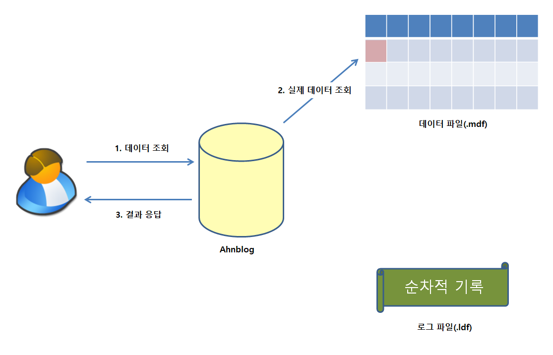 사용자가 데이터베이스에 조회 요청을 하면 일반적으로 사용자는 아래의 그림과 같이