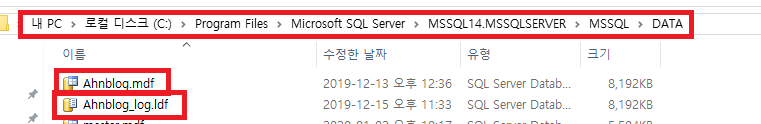 이동하게 되면 mdf, ldf 파일이 존재하는 것을 확인 할 수 있습니다.