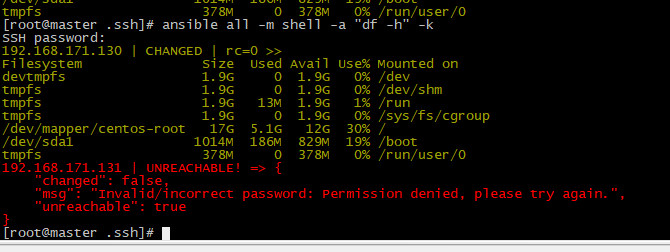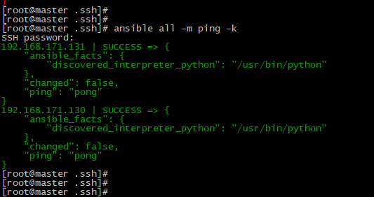 ansible all -m ping -k