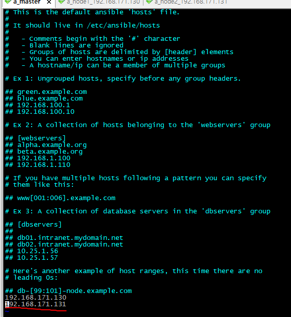 vi /etc/ansible/hosts에서 노드 아이피를 넣는다.